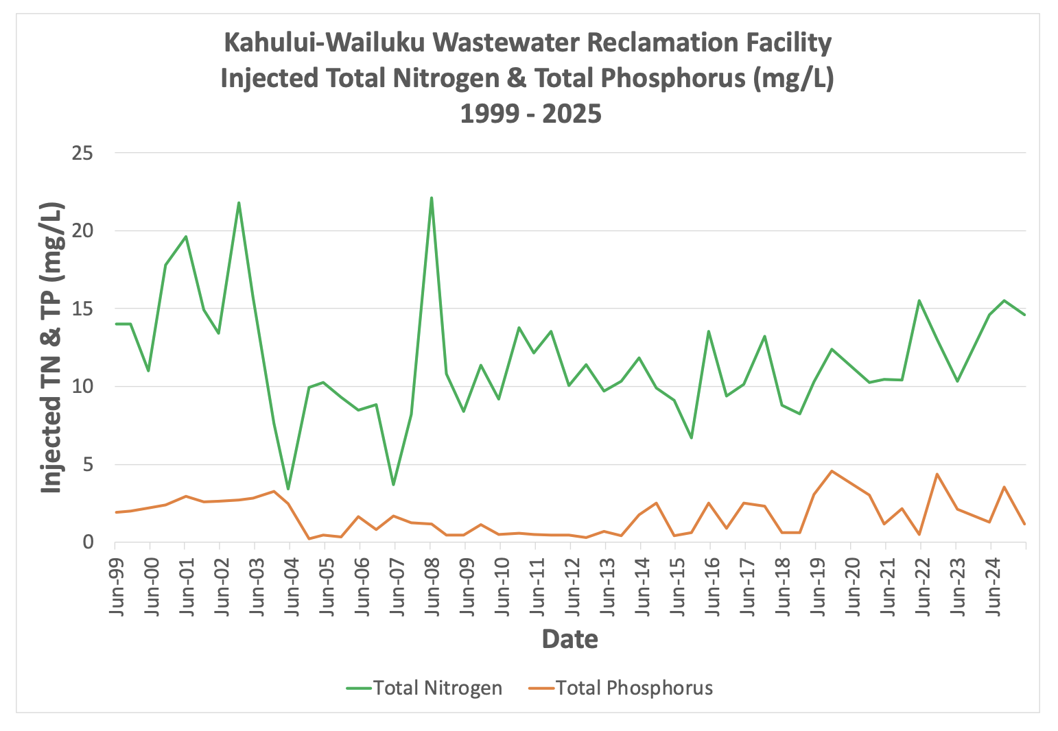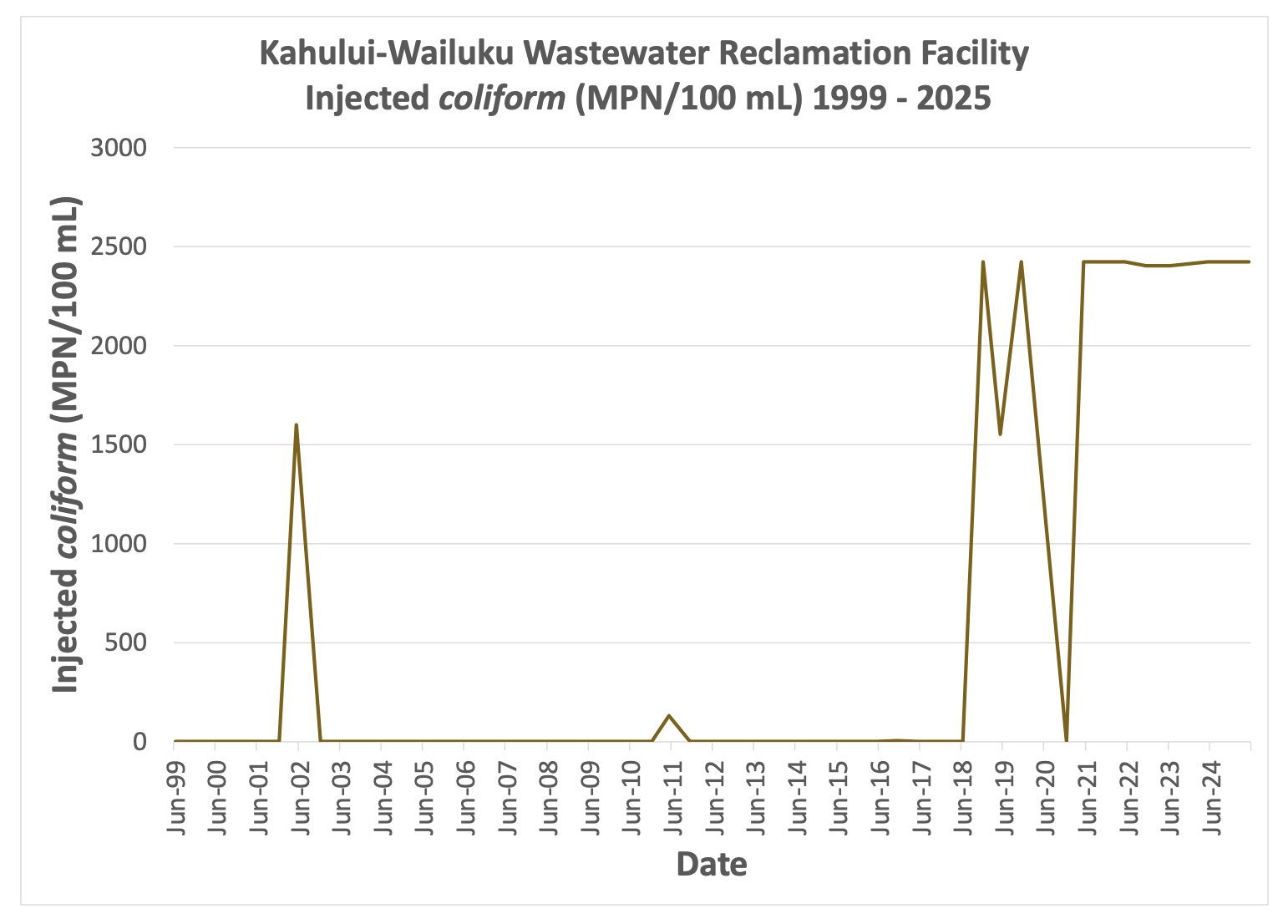 Kahului-Wailuku Municipal Wastewater Reclamation Facility flow data and effluent water quality data summary (1999 - 2025)